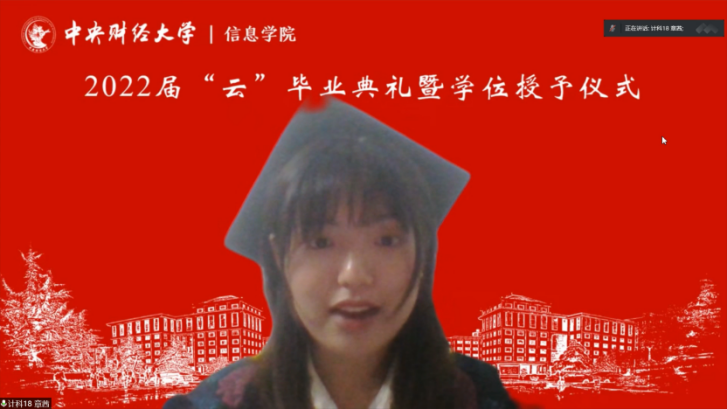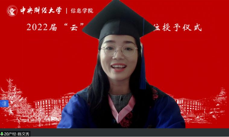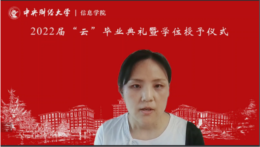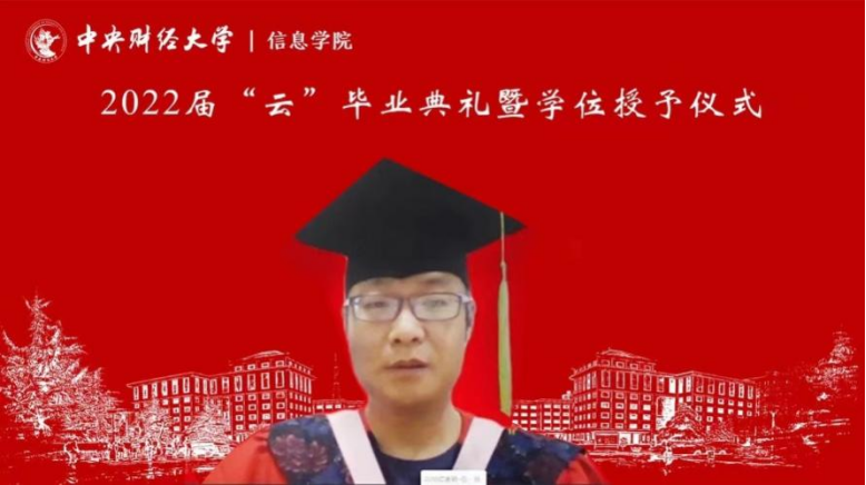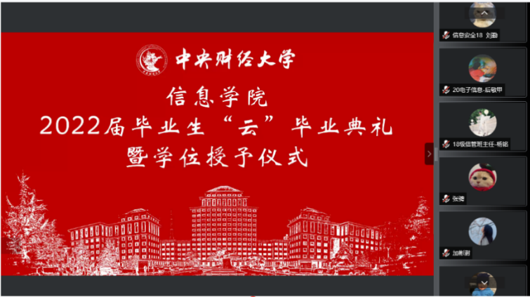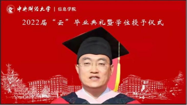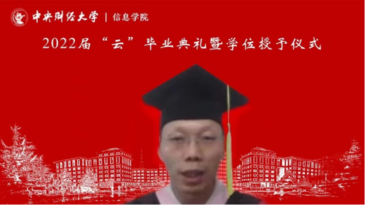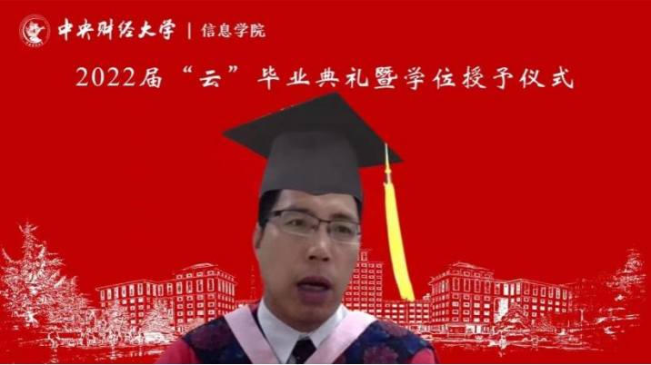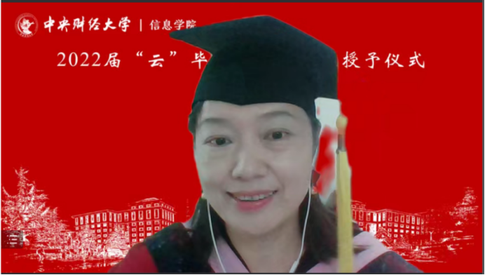 7月3日上午,信息学院2022年“云”毕业典礼暨学位授予仪式在线上隆重举行,学院209名毕业生相聚云端,共同见证典礼盛况。中央财经大学校长助理兼信息学院院长李涛教授、信息学院党委书记章宁教授、副院长王秀利教授、副院长李海峰副教授、毕业班班主任和辅导员、学院部分教师代表,信息学院1998级校友、国家发展和改革委员会地区经济司国土海洋与国家级新区发展处处长王明利女士及2022届全体毕业生参加典礼。学院党委副书记方德风主持典礼。