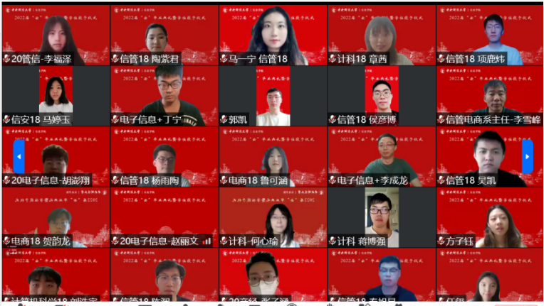 最后,全体参与典礼的老师和同学们一起“云”合影,留下了属于2022届毕业生灿烂青春的美好回忆。