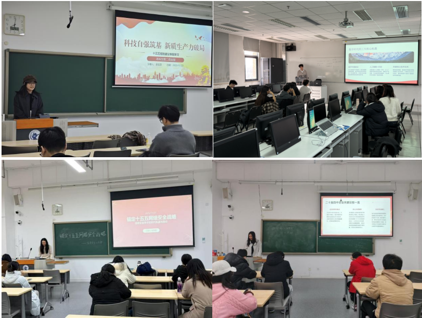 信息学院本科生第二党支部的多名学生党员担任此次宣讲主力,聚焦“十五五”规划建议的战略部署,围绕现代化产业体系、新质生产力及“人工智能+”等重点议题,面向各年级团支部开展专题分享,通过构建“青年讲、青年听”的学习共同体,从青年视角解读国家战略,以专业知识剖析时代课题,帮助同学们在理解国家发展大势中增强制度自信,在洞察科技创新脉络中明确专业使命,在学习交流中厚植家国情怀。